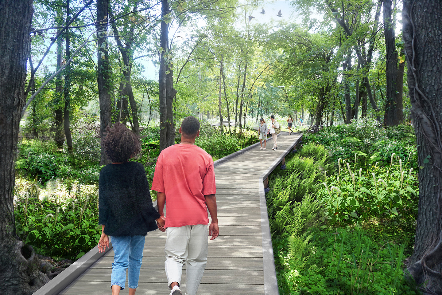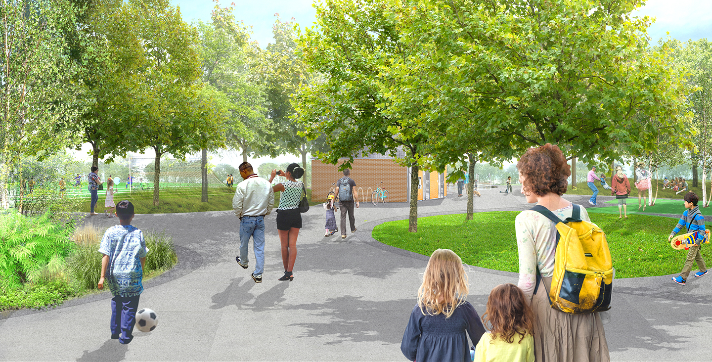 Once the world’s largest landfill, Freshkills Park is poised to become a working model of land restoration at the largest scale. As part of New York’s Anchor Parks Initiative, Starr Whitehouse was retained to lead an interdisciplinary team of engineers, ecologists, and architects to create a new master plan and implement the first stage of reclamation at the 46-acre South Park. Developed in close partnership with the community, the master plan has two main goals: restoring ecological systems and reintroducing recreation and amenity to the reclaimed site. Programming is informed by site topography, with two artificial turf ballfields screened from the highway by sculpted lawn areas and barrier mounds adjoining a wetland mitigation zone. An accessible path winds around the fields, connecting to a parking area and existing path system leading to Owl Hollow Fields. A comfort station provides essential services, bike racks and amenities, while trails through surrounding woods and wetlands emphasize education and cultural opportunity. Green infrastructure protects the wetlands from flooding, while native trees and understory reclaim the park for local plant and animal communities.