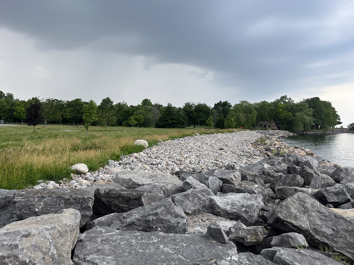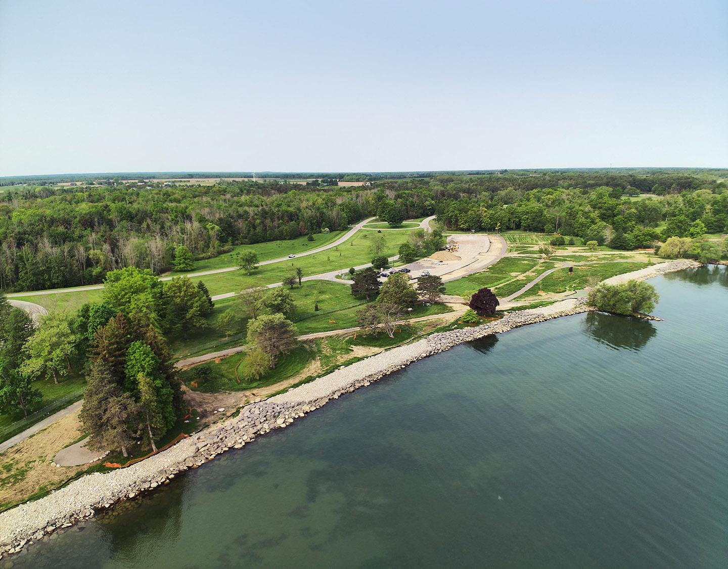 On the windswept shore of Lake Ontario, Hamlin Beach State Park provides a 1,200-acre public destination with mature trees, sandy beaches, camping, and hiking and biking trails. Winter storms and seasonal high lake levels now require a more sustainable approach to the shoreline. Starr Whitehouse is working with NYS Parks to: 1. Stabilize the shoreline in anticipation of stronger, more frequent Lake Ontario storm surges; 2. Improve ecology along the shoreline and upland landscapes; 3. Enhance the overall visitor experience. The new park design will replace the deteriorating waterfront promenade with cobble material to create a more dynamic and adaptable shoreline. Native plant species like grasses and shrubby willows will further stabilize the shoreline and reintroduce native habitat. Upland, ten acres of mown lawn will be converted into naturalized meadow, seeded with species native to the Great Lakes region. Improved circulation, wayfinding, and programming throughout the site will create a cohesive journey from meadow to shore — celebrating this valuable piece of Great Lake habitat.