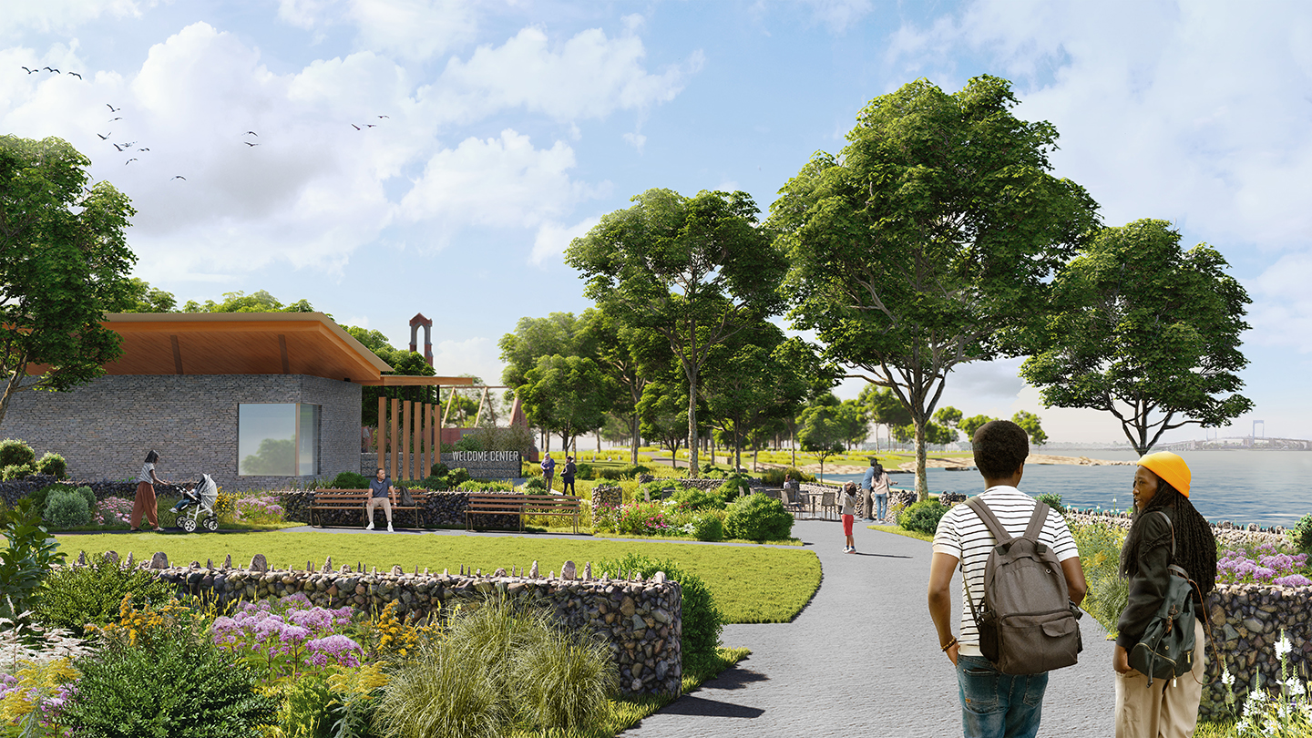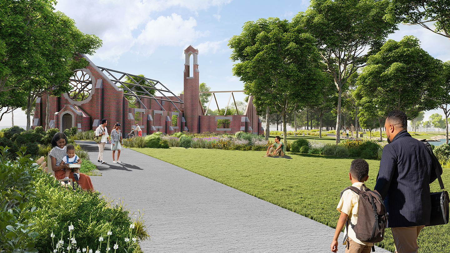 For over 100 years, Hart Island in Long Island Sound has been a public burial ground for New York City’s most vulnerable citizens: the impoverished, the homeless, people without next of kin, and the first victims of AIDS and Coronavirus. Only recently have family members and the public been allowed to visit the 120-acre island via ferry from the Bronx. While there is now public access, there are no visitor facilities or commemorative features to tell the story of the island, and its ecological landscapes have been only minimally maintained. Starr Whitehouse was engaged by NYC Parks — the agency tasked with managing visitation to the island — to develop a framework for capital improvements to the island. The plan considers visitor experience, shoreline ecologies, sea-level rise, interagency responsibilities, and visitor and burial operations. Because ferry service limits guided public visits to two hours, the plan recommends a compact arrival area featuring a new visitor center building, memorial landscapes, and the adaptive reuse of an historic chapel as a contemplative space. Island-wide, the plan enhances existing circulation to avoid encroaching on burial areas. Preserving historical elements, the plan upgrades the cemetery landscape and restores woodland and coastal ecosystems, remediating a landscape significantly disturbed by prior uses. Sequenced project recommendations with cost estimates support phased implementation. Grounded in engagement with over 200 community members, the plan focuses on the families of those buried, preserving the spiritual character of the island as a place for memory, nature, and reflection.
